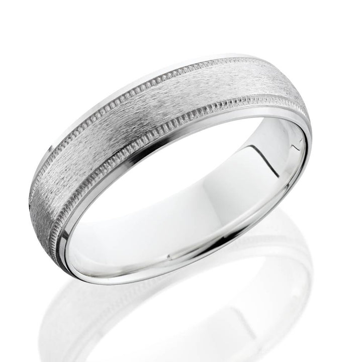 Brushed Milgrain & Polished Beveled Wedding Band 14K White Gold 6mm Size Selectable
