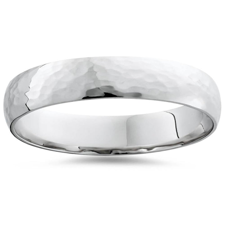 14K White Gold 4mm Hammered Wedding Band Ring New Size Selectable