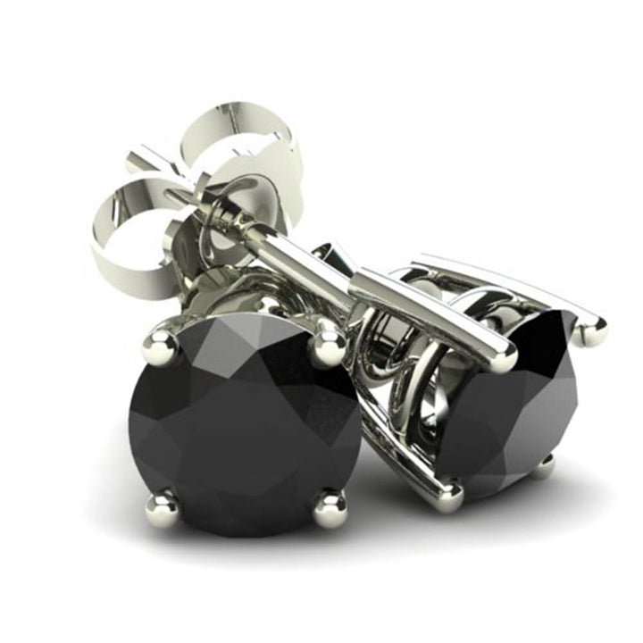 These .33ct Round Brilliant Cut Heat Treated Black Diamond Stud Earrings in 14K Gold Basket Setting by Pompeii3: These elegant stud earrings feature .33 carat total weight of round brilliant cut black diamonds set in a classic 14K white gold basket setting. The diamonds are securely held in place with push-back closures for comfort and a timeless look.
