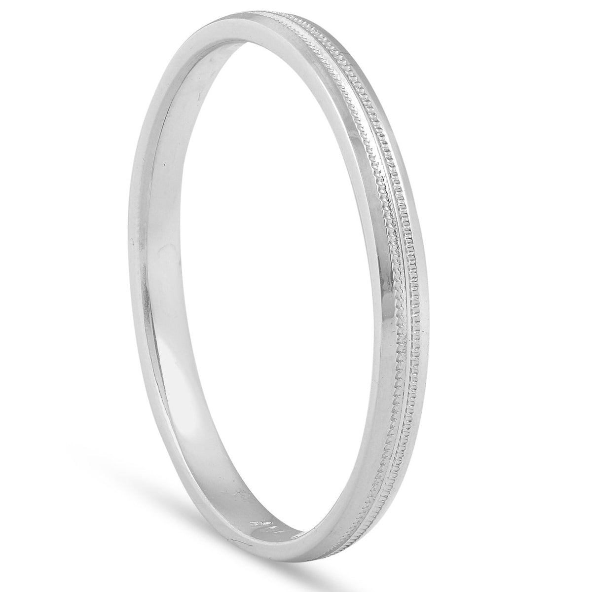 2mm 14K White Gold Milgrain Wedding Band Ring Brand Size Selectable