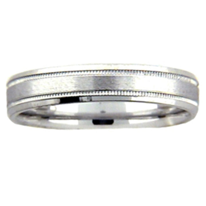 950 platinum, 4mm width, matte finish, milgraining, high polished edges.