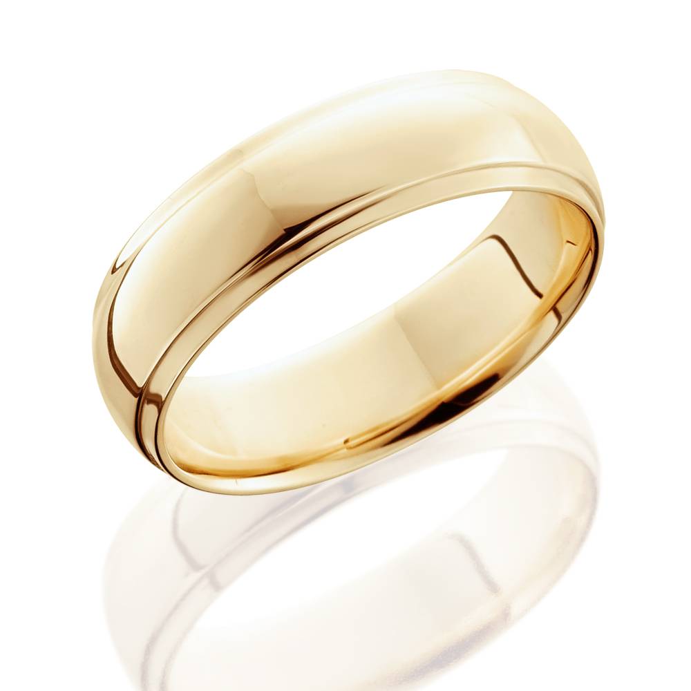 Crafted in 14K yellow gold. Measures approximately 6mm in width. High-polish finish. Available in a selectable size.