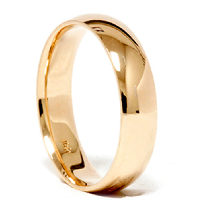 This High Polished Classic Wedding Band 14K Yellow Gold by Pompeii3 is a simple yet elegant piece, crafted from solid 14K yellow gold. The band is given a high polish and features rounded inner edges for a comfortable fit, making it an ideal choice for those seeking a timeless and durable wedding band.