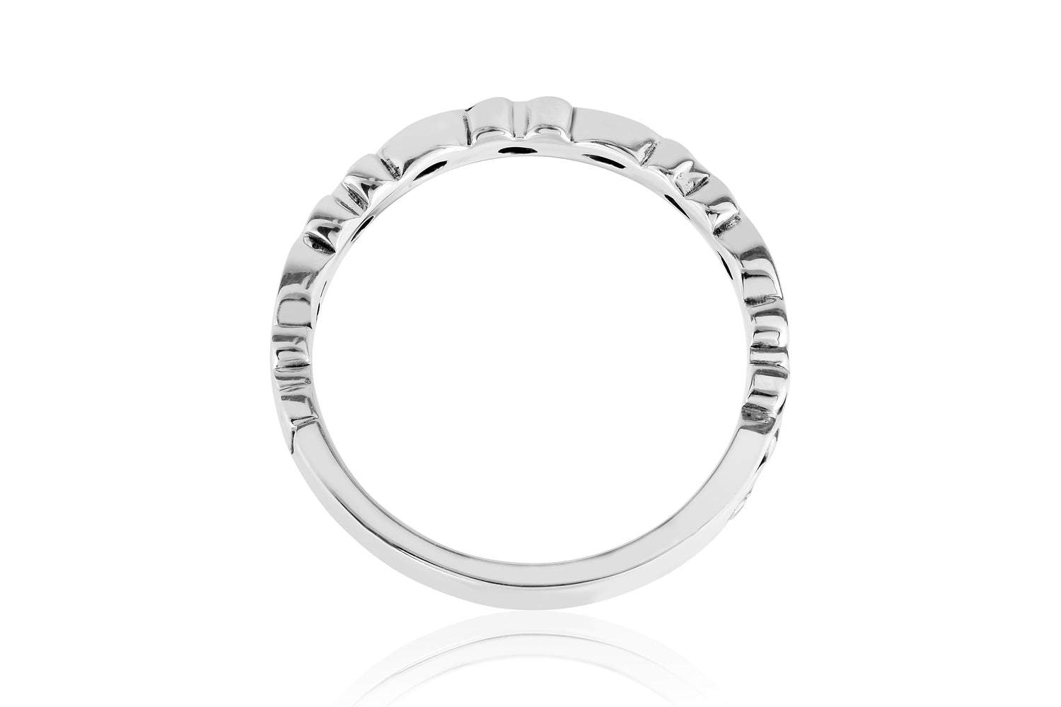 This 14K White Gold Hand Carved Women's Wedding Band Filigree Vintage Stackable Ring by Pompeii3 features intricate hand-carved detailing that highlights the craftsmanship and vintage-inspired design. The filigree pattern adds elegance and femininity to the ring, making it an ideal choice for those who appreciate traditional artistry with a modern twist. This versatile ring can be stacked with other bands for a more personalized look or worn on its own for an understated yet refined statement.