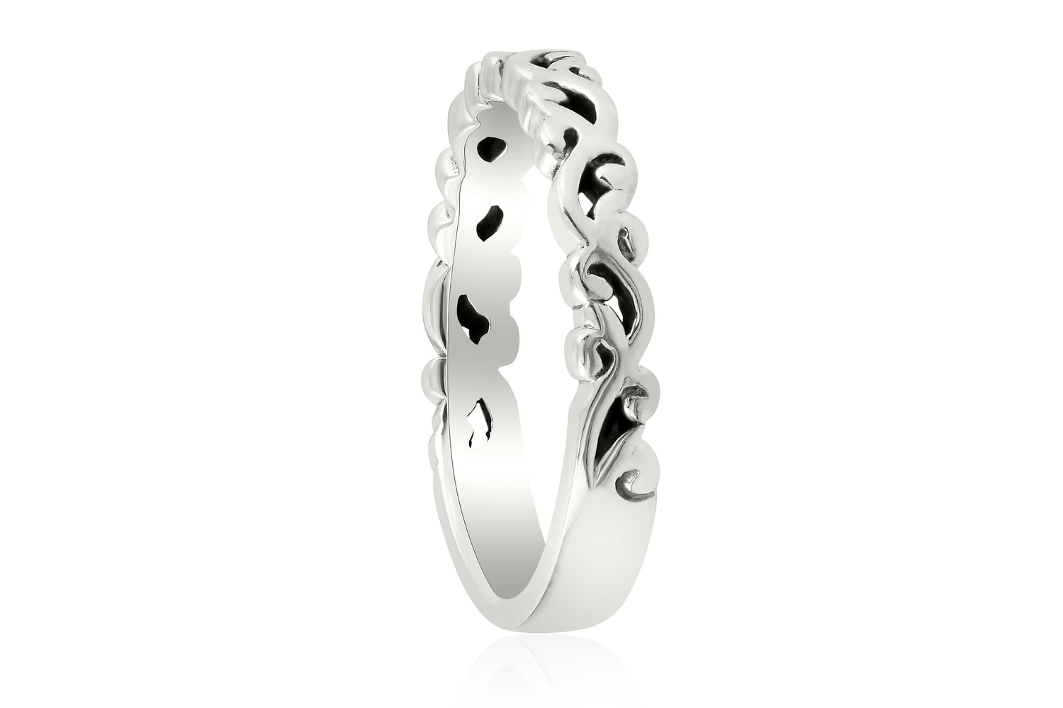 Handcrafted in solid 14K white gold with a hand-carved filigree design. Average weight: 2.5 grams.