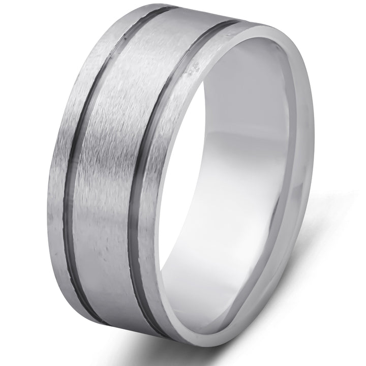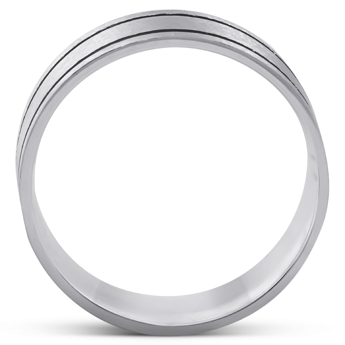 Handcrafted in 10K White Gold with Black Gold inlay, featuring a brushed finish.