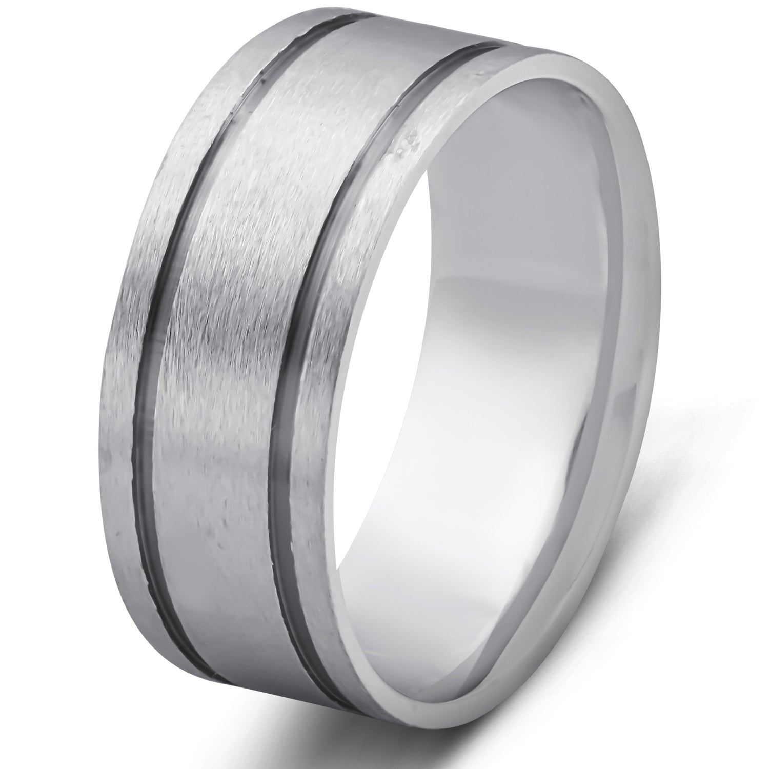 Brushed Double Inlay Wedding Band 10K Black & White Gold Size Selectable