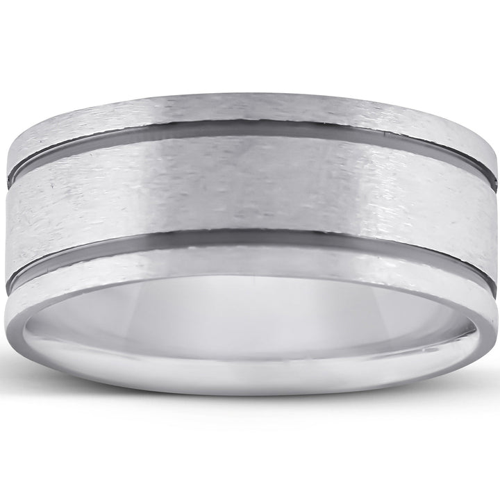 This Brushed Double Inlay Wedding Band in 10K Black & White Gold by Pompeii3 offers a bold, modern design. Made from solid 10K white gold with a striking black gold inlay, this wedding band combines sophistication with unique contrast. The brushed finish adds depth, while the inlay provides a contemporary edge, making it a perfect choice for those seeking a stylish and durable wedding band.
