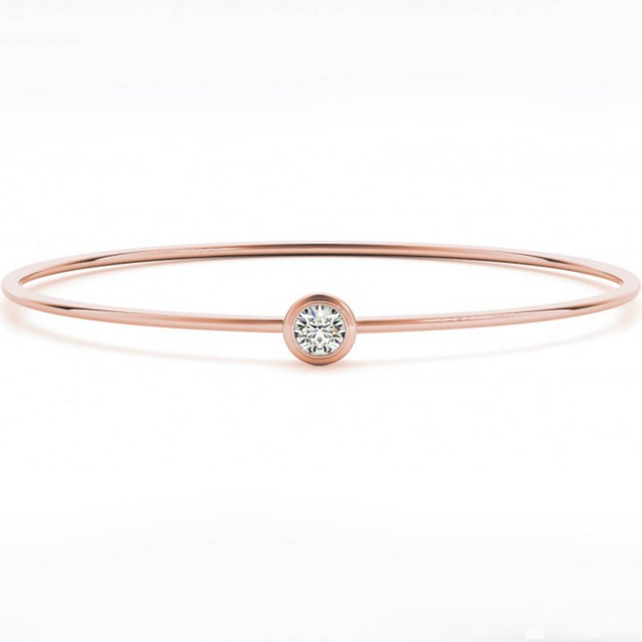 3/8ct Bezel Solitaire Round Brilliant Cut Bangle Bracelet 14k Rose Gold