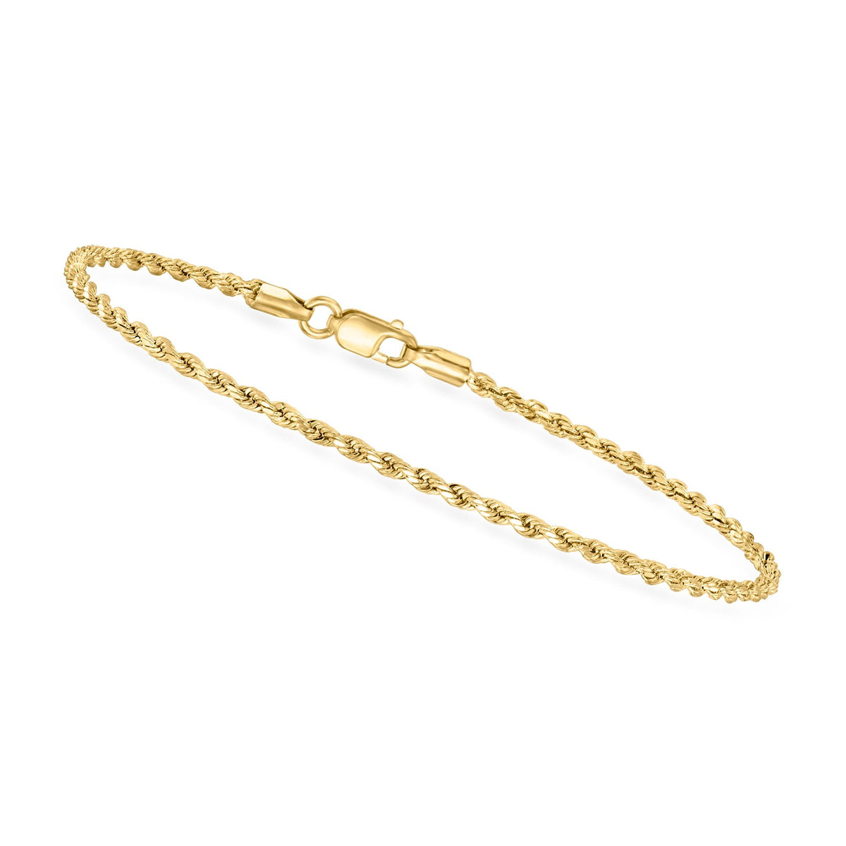This 1.8mm 10kt Yellow Gold Rope-chain Bracelet by Canaria Fine Jewelry is the perfect piece for any occasion. The classic rope-chain design adds texture and shine, while the polished finish ensures it catches the light beautifully. This bracelet is perfect for everyday wear or stacking with other pieces.