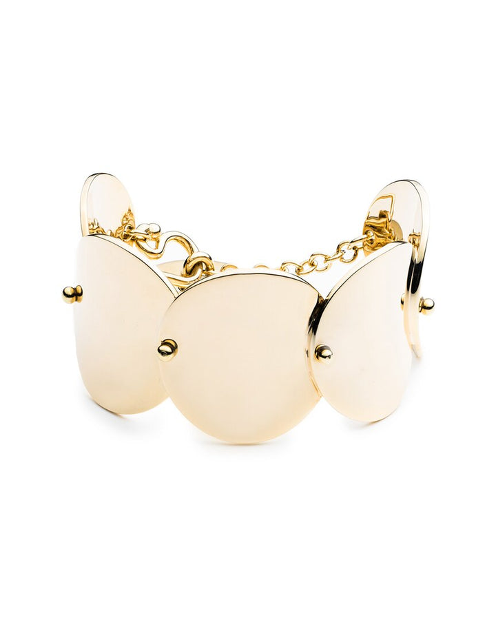 This Eddie Borgo 12K Cuff Bracelet is a statement piece that combines luxury and style. Made from 12-karat gold, this cuff bracelet features a bold design that is both elegant and edgy. With an adjustable button and hook closure, it offers a secure fit for wrists between 6.5-7.5 inches. This bracelet comes with a velvet pouch, making it a perfect gift for a loved one or a stylish addition to your personal collection.