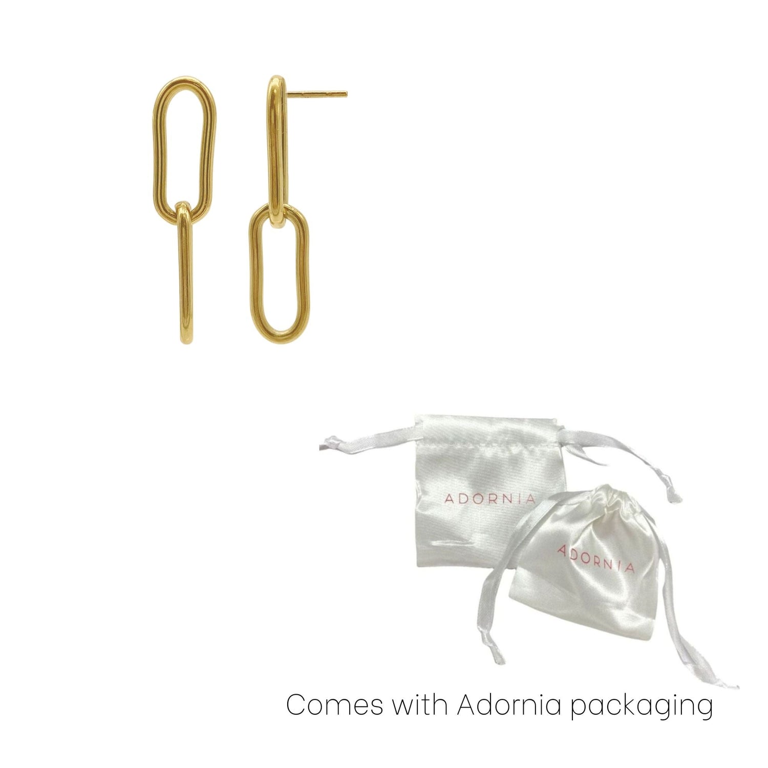 These Tarnish Resistant 14k Gold Plated Paper Clip Chain Drop Earrings by Adornia offer a sleek, modern look with their gold-plated stainless steel construction. The tarnish-resistant design ensures durability and long-lasting wear, making them a versatile accessory for all occasions.