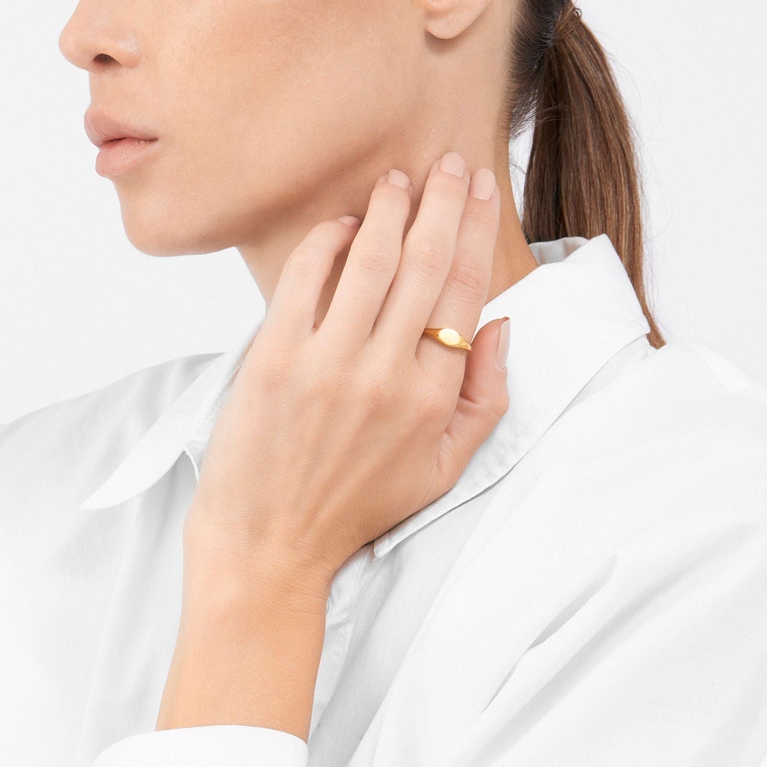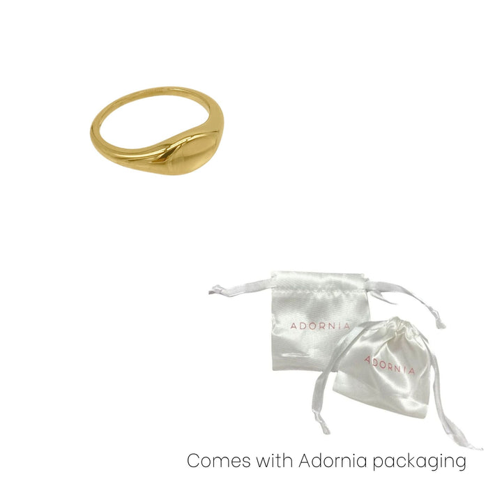 This Tarnish Resistant 14k Gold Plated Signet Ring by Adornia captures the effortless elegance of minimal design with a modern twist. The sleek, oval-shaped top offers a refined silhouette, making it a versatile addition to both everyday and elevated looks. A symbol of personal power and timeless style, the signet ring has long stood for identity and confidence. This interpretation balances subtlety and substance, enhanced by its tarnish-resistant finish for lasting wear.