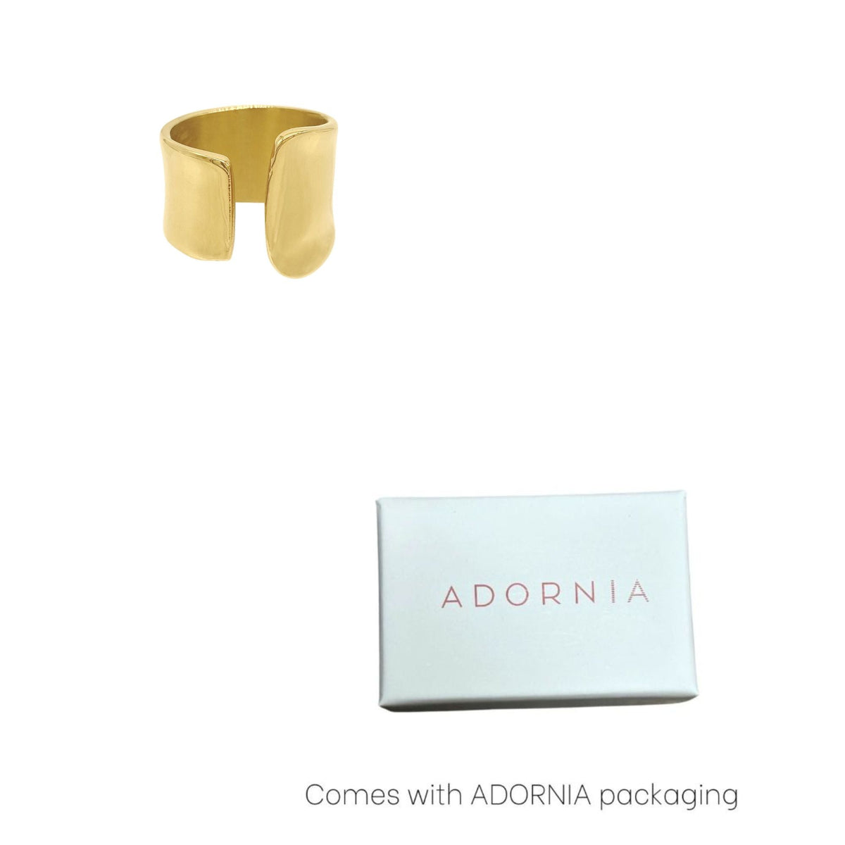 This Tarnish Resistant 14k Gold Plated Tall Open Band Ring by Adornia makes a bold, sculptural statement. Designed with a contemporary open silhouette and elevated height, the ring brings a sleek architectural feel to any look. It’s a modern classic made for self-expression and daily luxury—offering standout style while remaining comfortably wearable.