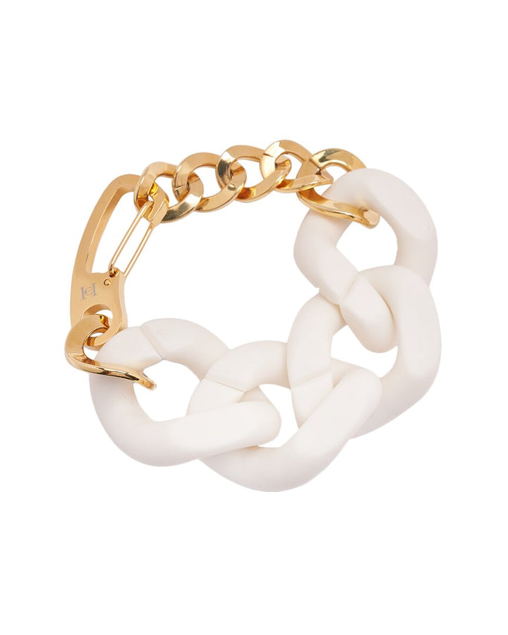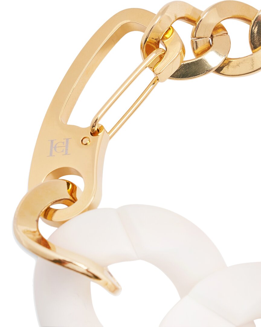 This Aria Matte Chain Plated Bracelet by Carolina Herrera is a statement piece that exudes luxury and modern elegance. Crafted from methacrylate and plated brass, this bracelet features a sleek matte chain design that adds sophistication to any ensemble. With an adjustable length of 21 cm and a 6 cm extender, it offers a customizable fit for any wrist. The perfect addition to your jewelry collection, this bracelet elevates your style with timeless appeal.