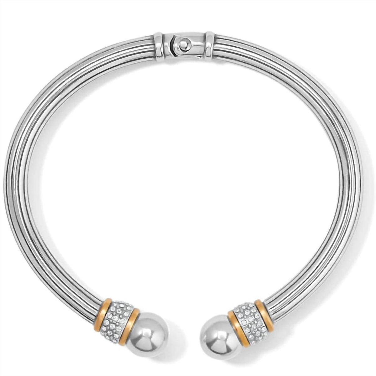 This Women’s Open Hinged Bangle in Silver-gold by Brighton is a chic and versatile piece that can be worn on its own or stacked with other bracelets. The enamel detailing on the silver and gold plating gives it a modern and sophisticated touch, while the hinged closure ensures easy wear.