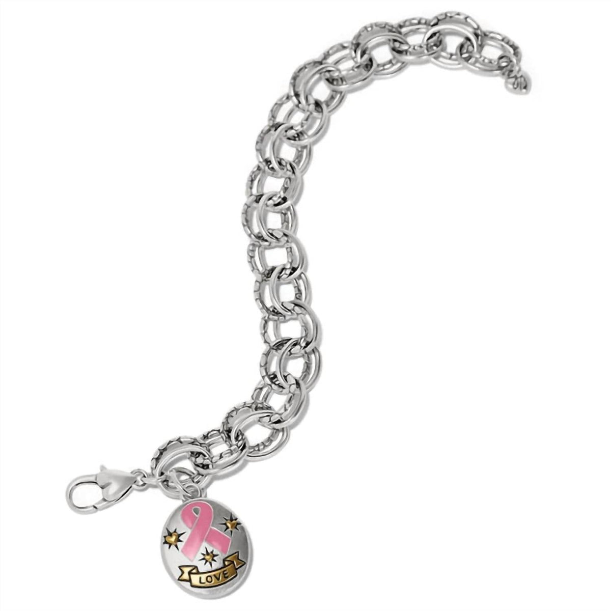This Women's Power of Pink 2023 Bracelet in Silver-gold by Brighton is a beautifully crafted piece with enamel detailing and a two-tone finish. Featuring a lobster claw closure, this bracelet is adjustable and measures 8 3/4 inches in total length, offering a stylish, versatile look that pairs well with any ensemble.