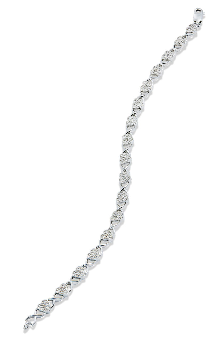 Sterling silver with 0.10 carat total diamond weight. Bracelet length: 7 inches. Lobster clasp.
