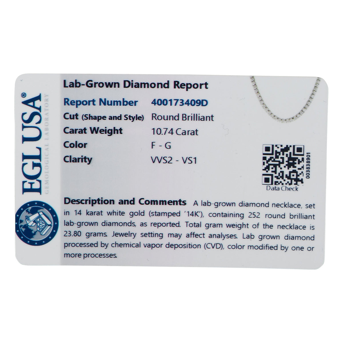 This LB Exclusive 14K White Gold 10.74ct Lab-Grown Diamond Tennis Necklace MF21-100924 offers unparalleled elegance with its stunning 10.74 carats of round brilliant lab-grown diamonds. Set in a luxurious 14K white gold tennis necklace, this piece is the perfect combination of modern craftsmanship and timeless beauty. The 252 lab-grown diamonds, with F-G color and VVS2-VS1 clarity, sparkle with extraordinary brilliance, making this necklace ideal for both day-to-night wear.