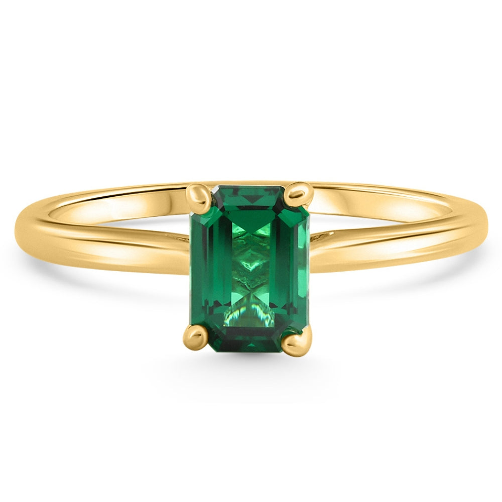 1ct Emerald Solitaire Ring 10k Yellow Gold Lab Grown