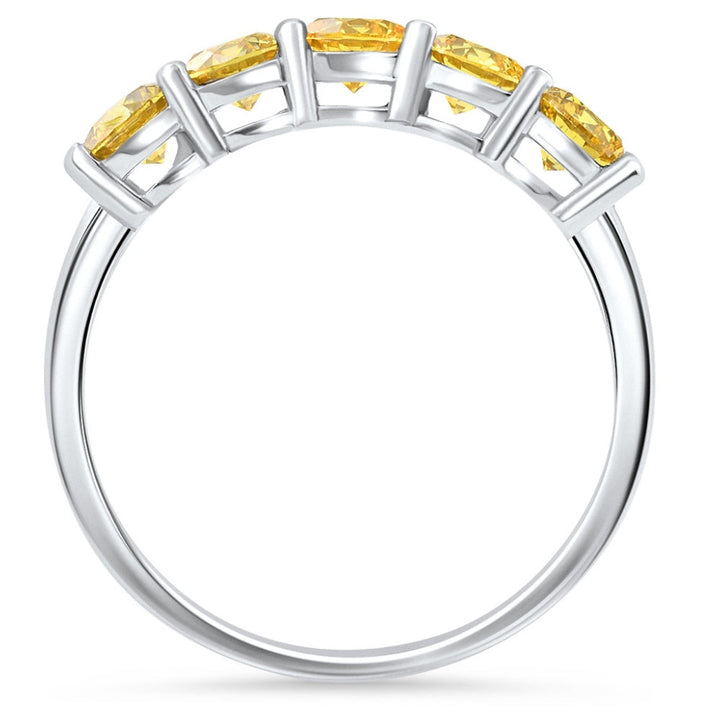 1ct Fancy Yellow Diamond Five Stone Wedding Ring 14k Gold Lab Grown