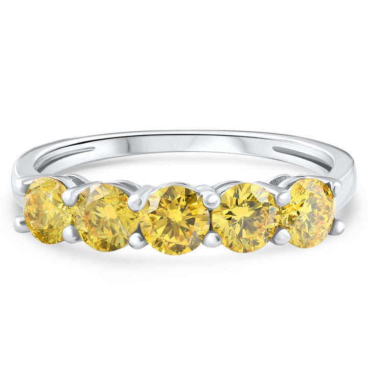 Made from 14k white gold with 5 round brilliant cut fancy yellow lab-grown diamonds, totaling 1.0 carat.