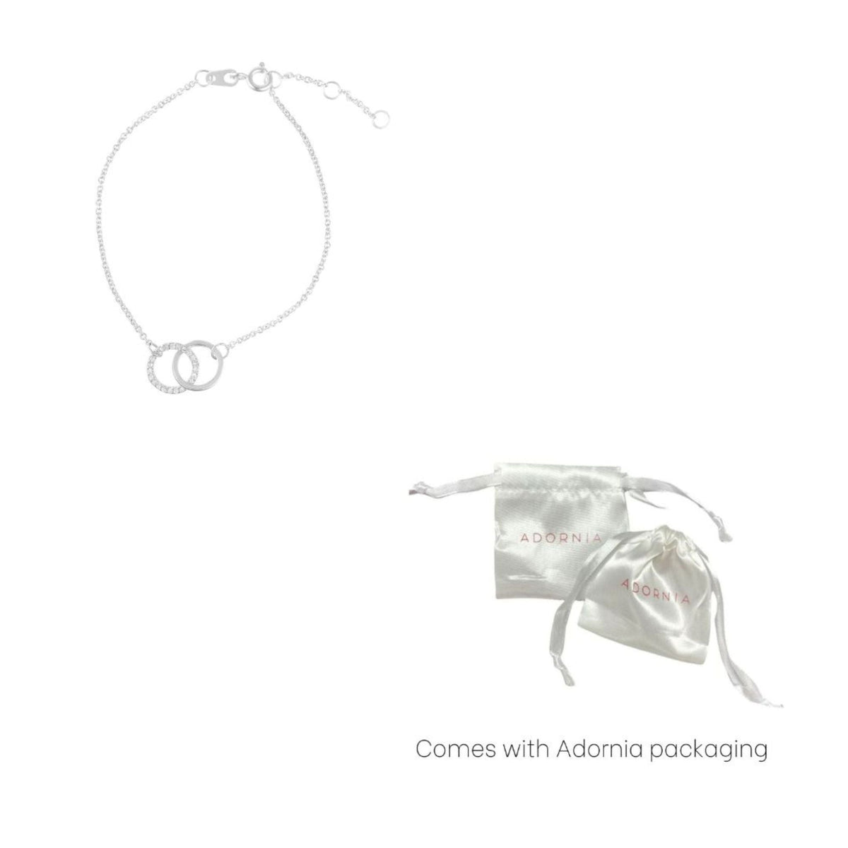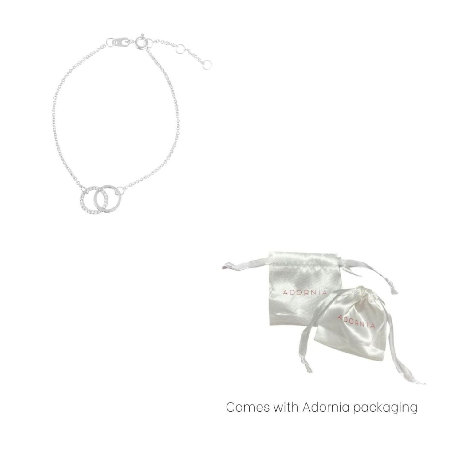 This Silver Plated Adjustable Pave CZ Rings Bracelet by Adornia is a delicate and glamorous piece. Featuring crystal-clear cubic zirconia stones set in a silver-plated brass base, this bracelet is perfect for adding a touch of sparkle to any outfit. The adjustable length ensures it fits most wrist sizes, making it a versatile piece for everyday wear.
