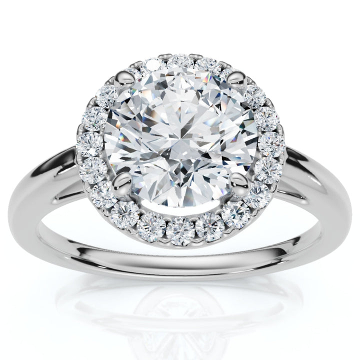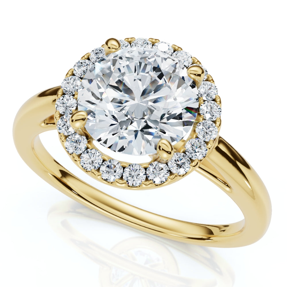 This Certified 1 3/4ct Halo Round Cut Diamond Engagement Ring in 14k Gold by Pompeii3 is a classic symbol of love and commitment. The stunning 1.5 ct. round brilliant-cut diamond is surrounded by a halo of accent diamonds, enhancing its brilliance. Set in a polished 14k gold band, this ring is perfect for those who desire an engagement ring that is both timeless and dazzling. The certified diamond ensures the highest quality, making this a lasting symbol of your love.