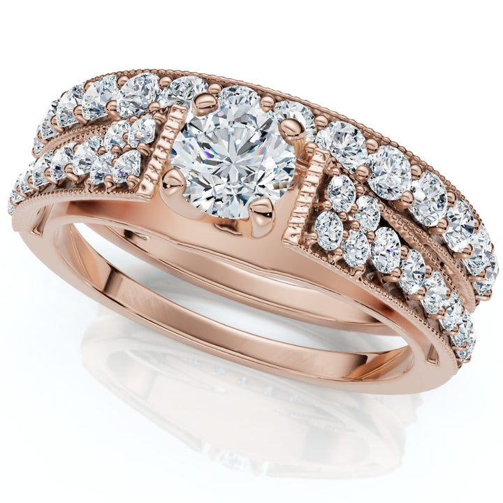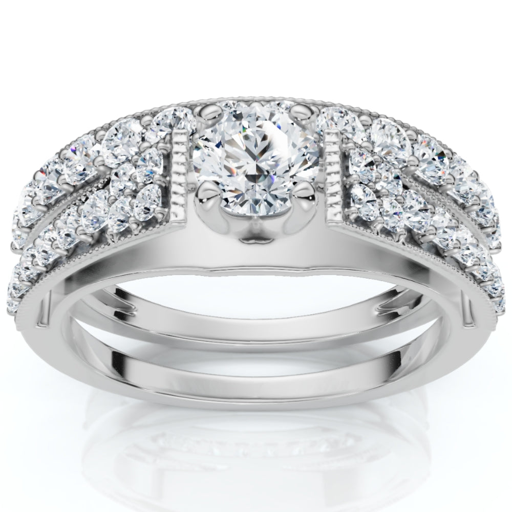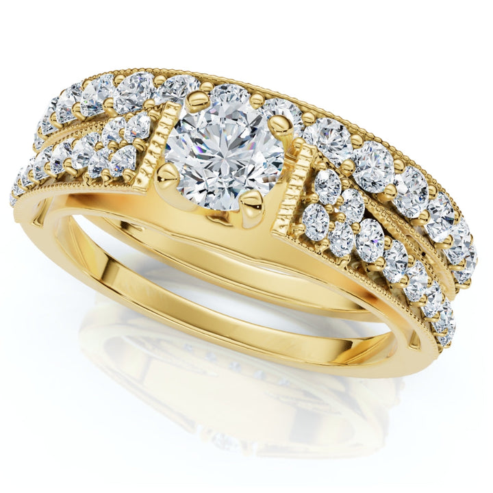 1ct TW Vintage Engagement Wedding Ring Set Lab Grown 14k Gold