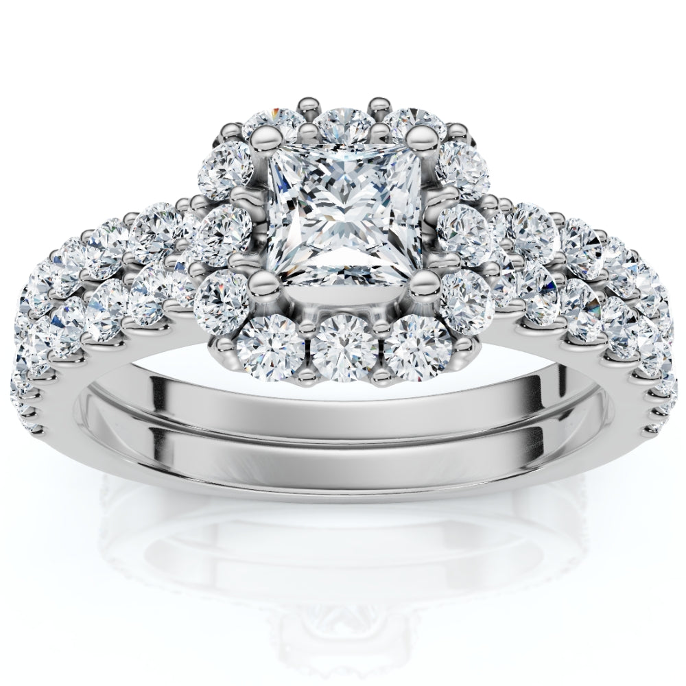 1.50ct Princess Cut Halo Diamond Engagement Wedding Ring Set 14k Gold Lab Grown