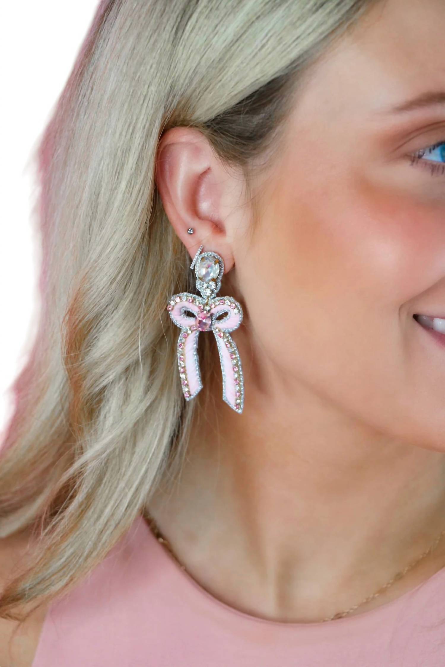 Women's Beaded Bow Drop Earrings In Baby Pink