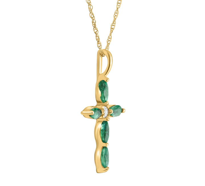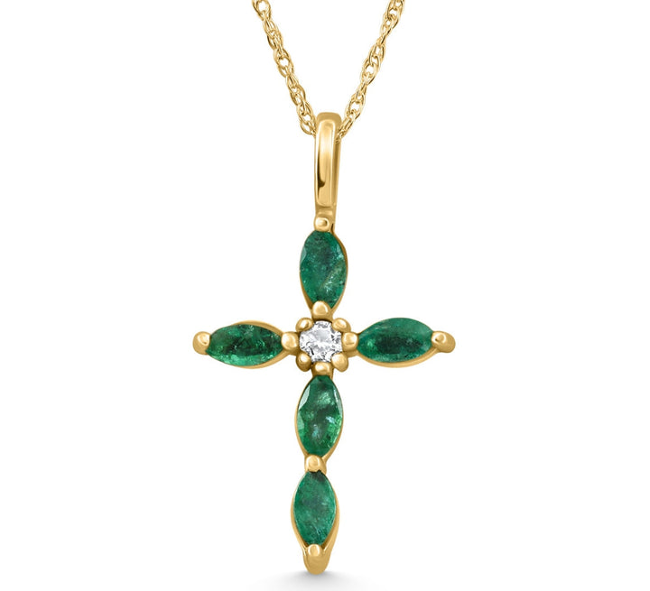 1/2ct Emerald Marquise Diamond Necklace Cross Pendant 10K Yellow Gold 1' Tall