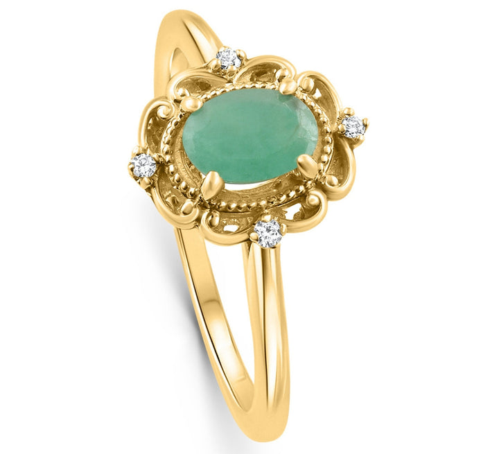 1/2ct Oval Emerald & Lab Grown Diamond Ring 10k White Gold