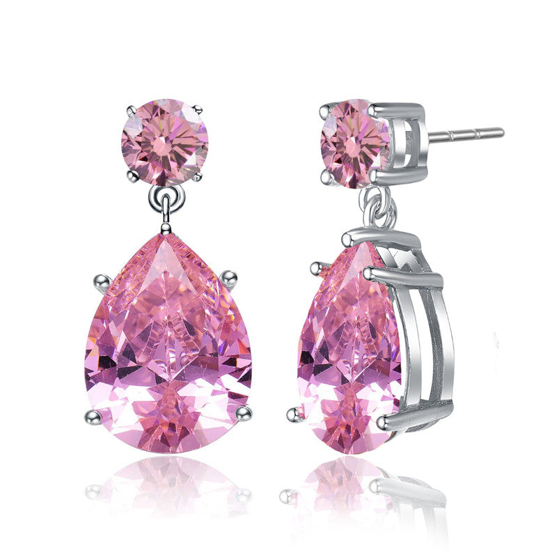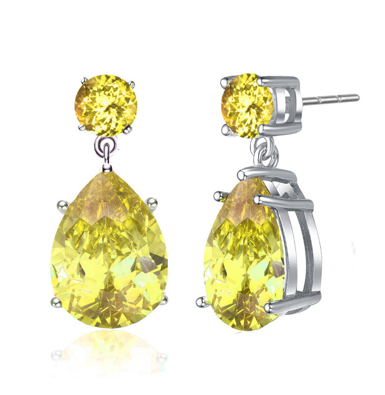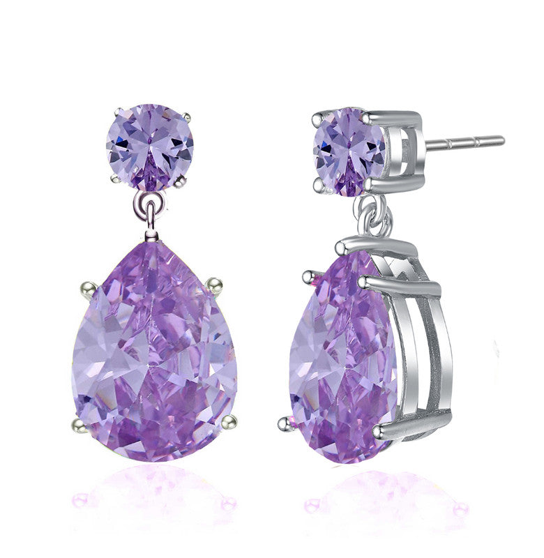 These Sterling Silver Teardrop Shaped Blue Cubic Zirconia Accent Drop Earrings by Genevive Jewelry: Featuring a light blue pear-shaped cubic zirconia stone, these drop earrings are crafted in sterling silver with rhodium plating. A perfect accessory to add a touch of elegance and sparkle to your ensemble.