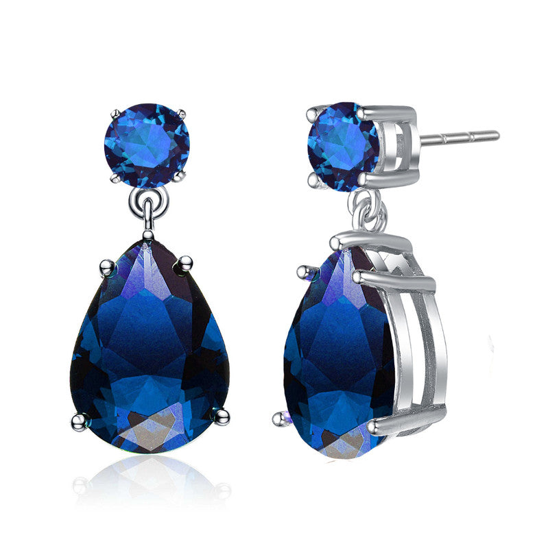 Sterling Silver Teardrop Shaped Blue Cubic Zirconia Accent Drop Earrings