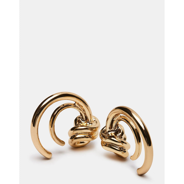 These Knot Hoop Earrings Gold by Steve Madden: These elegant hoop earrings feature a unique knot design, adding a modern touch to your style. Crafted with high-quality materials, these earrings are perfect for elevating any outfit, from casual to evening wear.