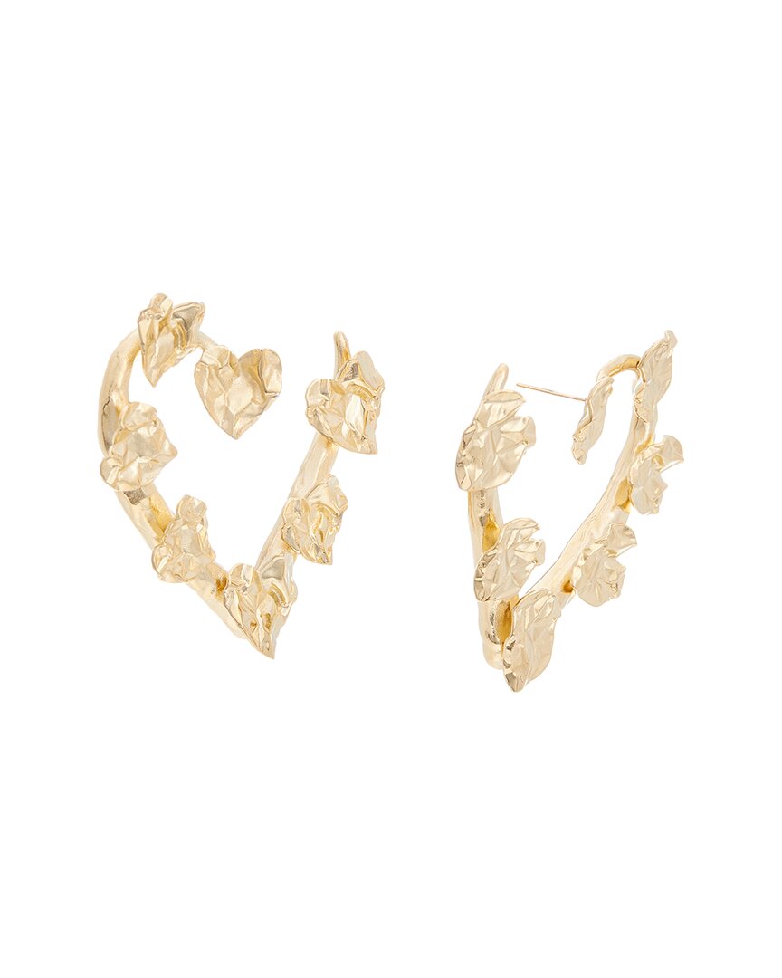 These Oscar De La Renta 14K Crushed Heart Hoops by Oscar de la Renta embody the designer’s signature feminine and transcendent style. The crushed heart design creates a striking contrast against the polished 14K gold, exuding both softness and strength. With a substantial size, these hoops are a statement piece perfect for enhancing any ensemble, making them a versatile addition to any jewelry collection. Whether for a casual day out or a glamorous evening, these hoops add a contemporary touch of romance.