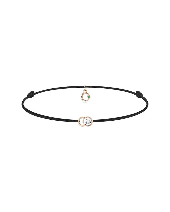 18K pink gold, Diamonds: 0.15ct total weight, VS1 clarity, round-cut, pave setting, lab-grown, very good cut. Bracelet: Recycled polyester cord, adjustable 14-19 cm, knot clasp closure.