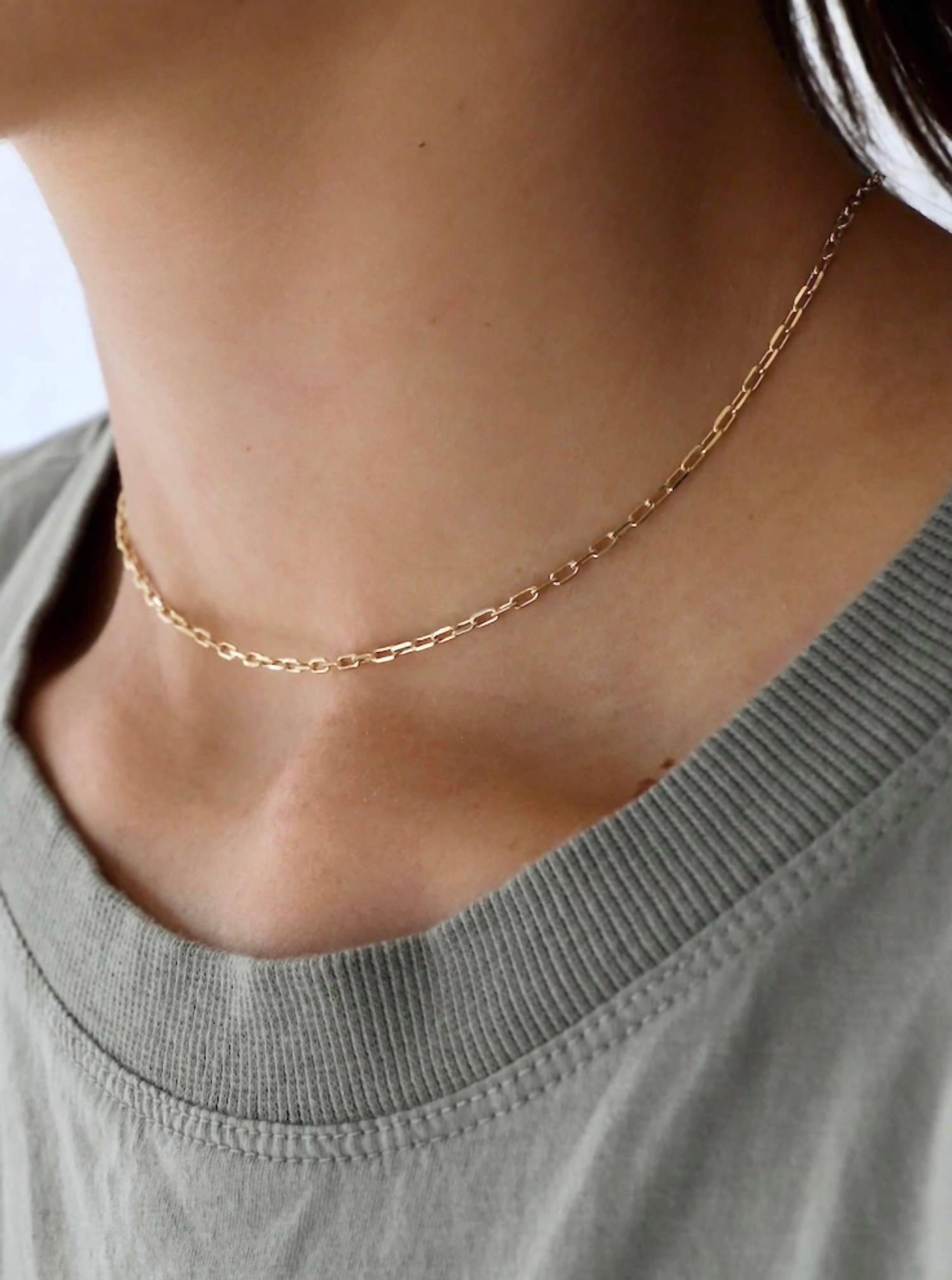 24kt gold-plated brass, Paperclip chain, Necklace length: 15-17 inches, Gold-filled lobster clasp with extender.