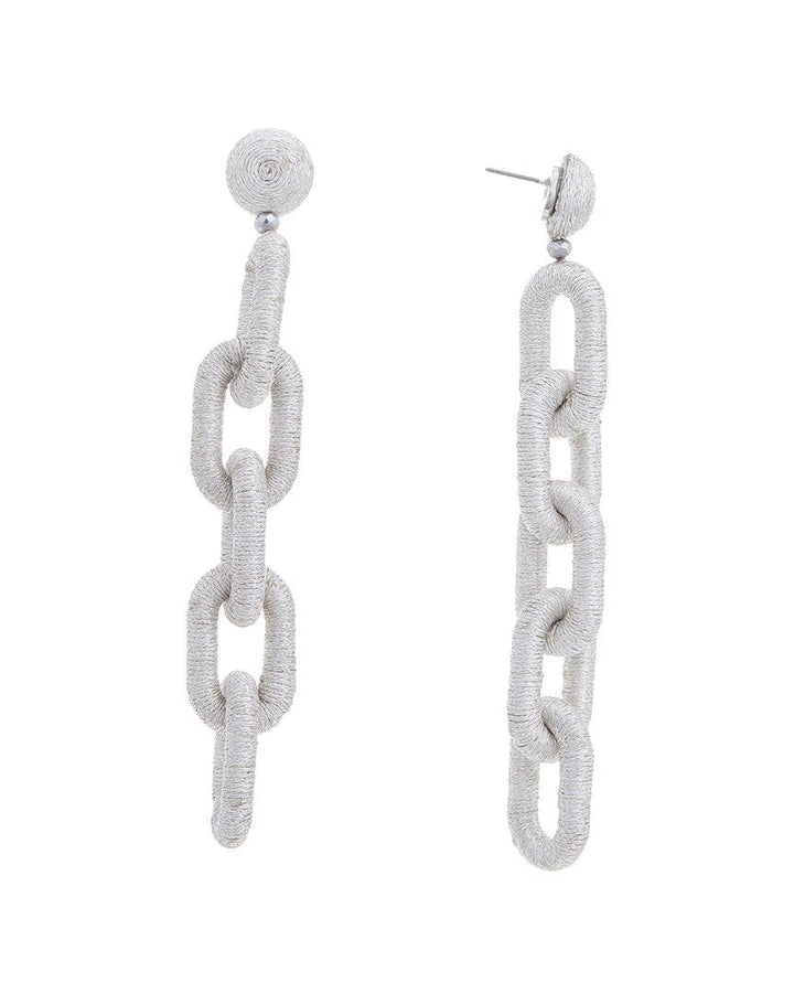 These Coil Vertical Link Earrings by Oscar de la Renta reflect a sculptural, runway-inspired aesthetic. Featuring interlocked links with a coiled texture, they cascade in a refined silhouette that makes a dramatic statement. A contemporary interpretation of chain-link elegance.