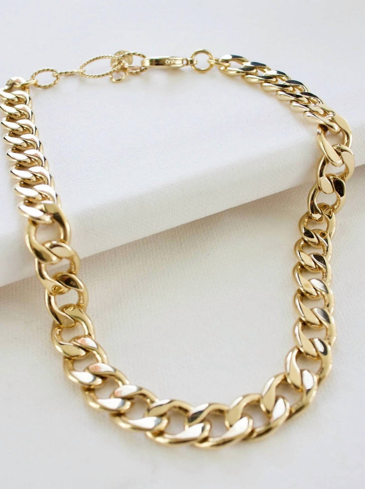 This Statement Cable Chain Necklace by Katie Waltman is a stunning piece that can be worn on its own or layered. With a 24kt gold overlay, the necklace offers durability and style. The adjustable length allows for versatile styling, making it a must-have for your jewelry collection.