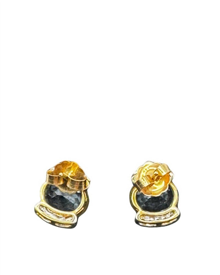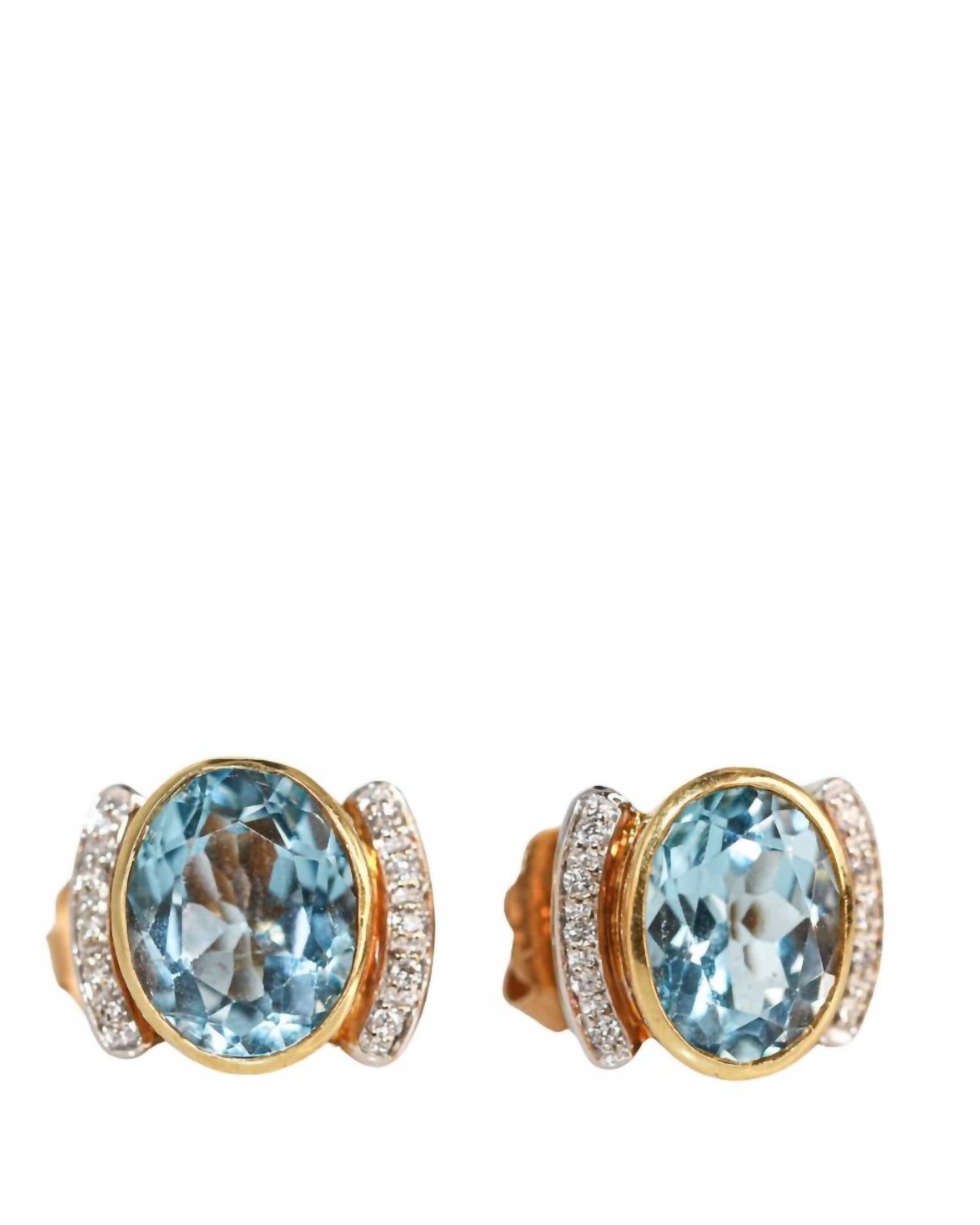 Crafted in 14K yellow gold with diamond blue topaz, stud backing.