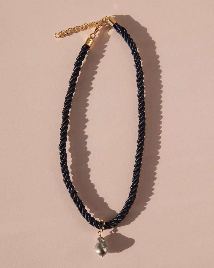 This The Pearl Rope Necklace by Luv Aj is a stylish and fun piece featuring a dark blue rope with a faux pearl charm. The 16-inch length, with a 2-inch extender, ensures a perfect fit. Whether you’re dressing up or down, this necklace makes an elegant statement.