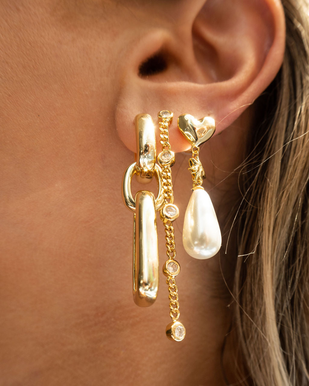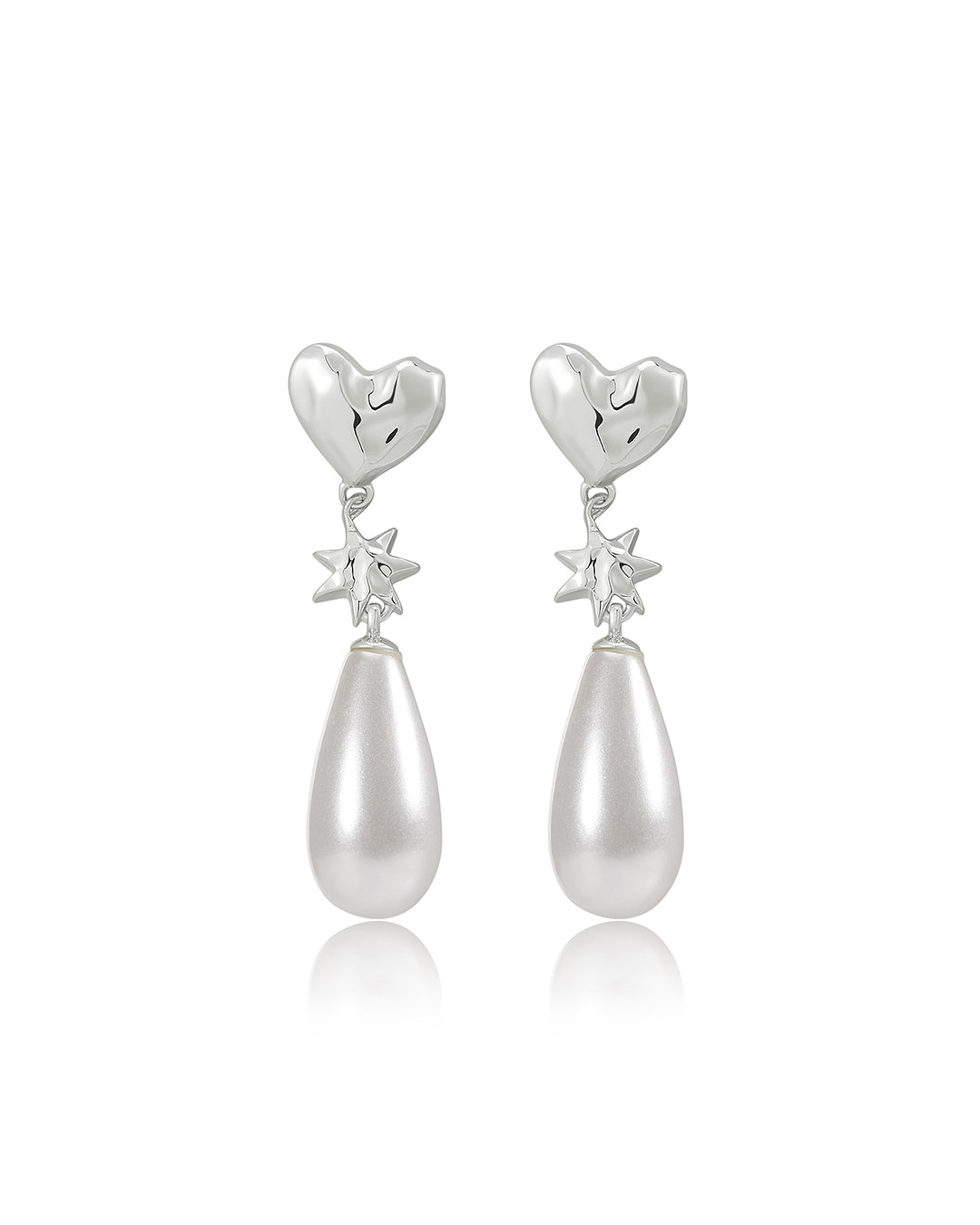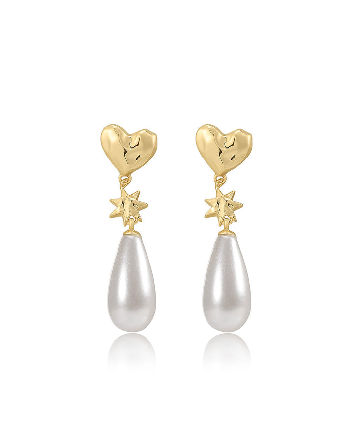 These Pearl Star Studs by Luv Aj: Featuring a heart-shaped stud with a star and pearl dangling charm, these earrings are both playful and elegant. The perfect blend of whimsy and sophistication, they add a unique touch to any look.