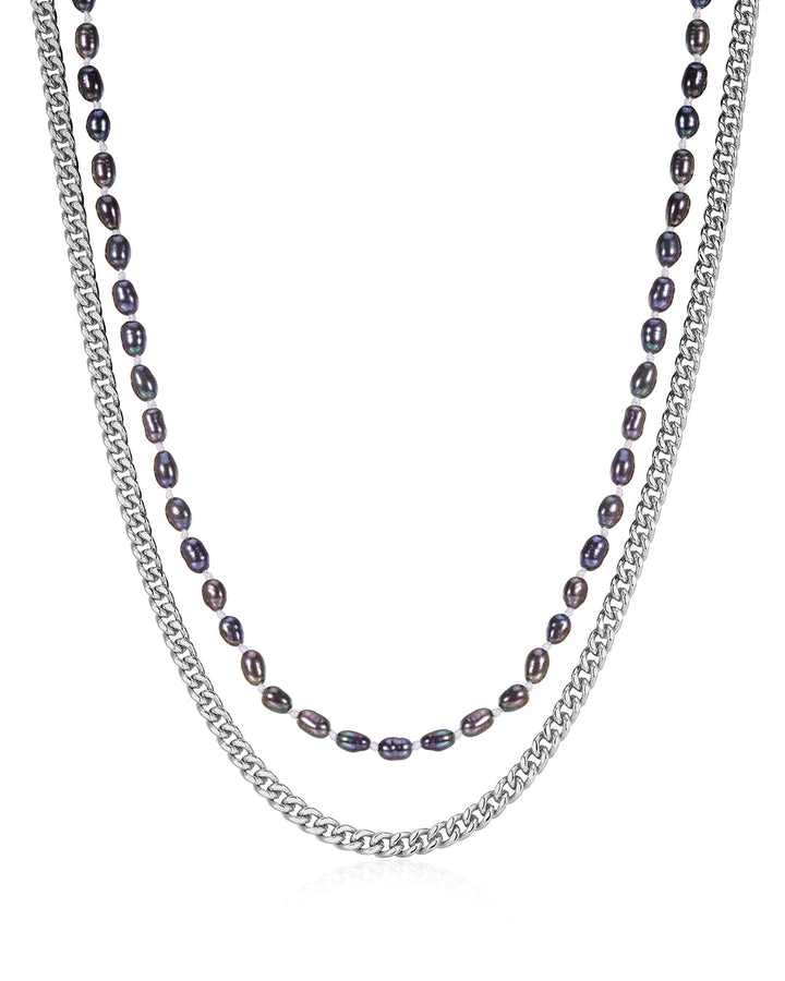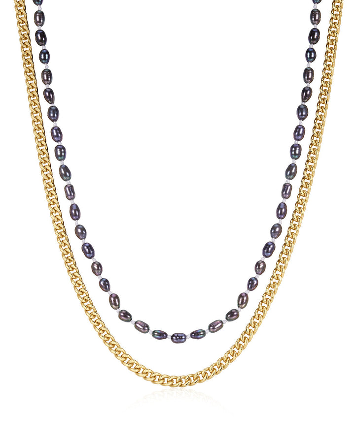 This The Pearl Chain Necklace Set by Luv Aj is the perfect combination of organic freshwater pearls and a sleek curb chain. With two adjustable necklaces, it can be worn together or separately, making it a versatile addition to your jewelry collection.