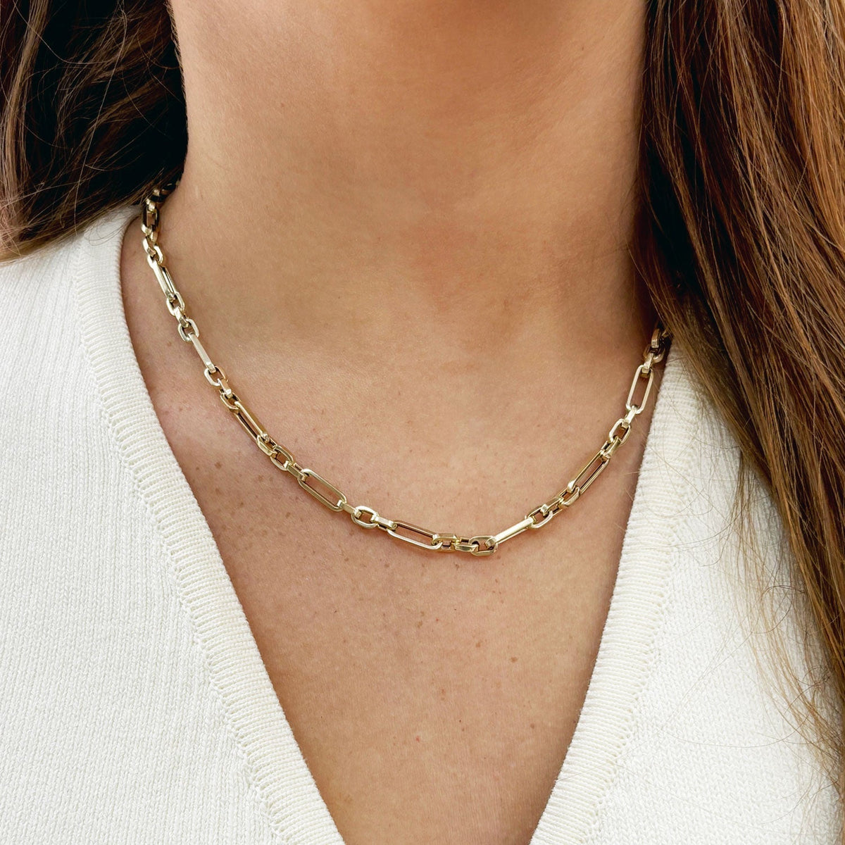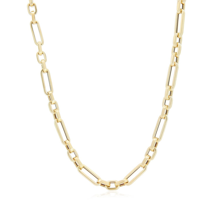 Crafted in 14K yellow gold, featuring square and paperclip links. Necklace length: 18'. Lobster clasp.