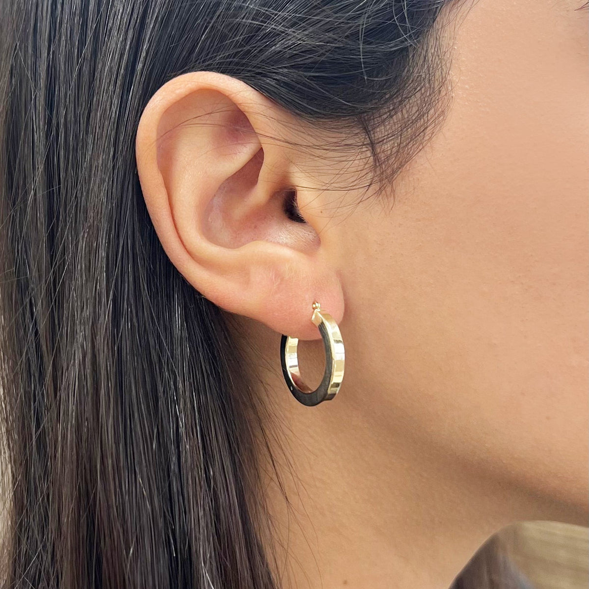 These Large Square Tube Hoop Earrings by The Lovery are a chic and timeless design, featuring square tubes crafted in 14K yellow gold. Measuring 20 x 20mm, these hoops are perfect for making a statement while maintaining an elegant and sophisticated look.