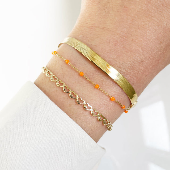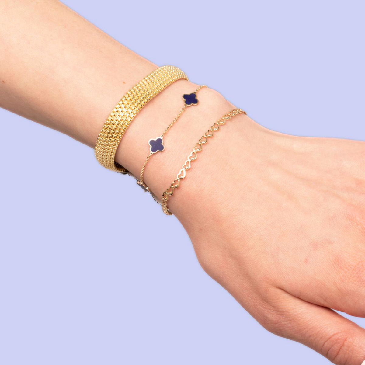 This Gold Heart Link Bracelet by The Lovery features delicate heart-shaped links, creating a sweet and romantic design. Made in 14k yellow gold, this bracelet is perfect for stacking or wearing on its own for a more subtle yet stunning look. It’s sure to earn you compliments wherever you go.