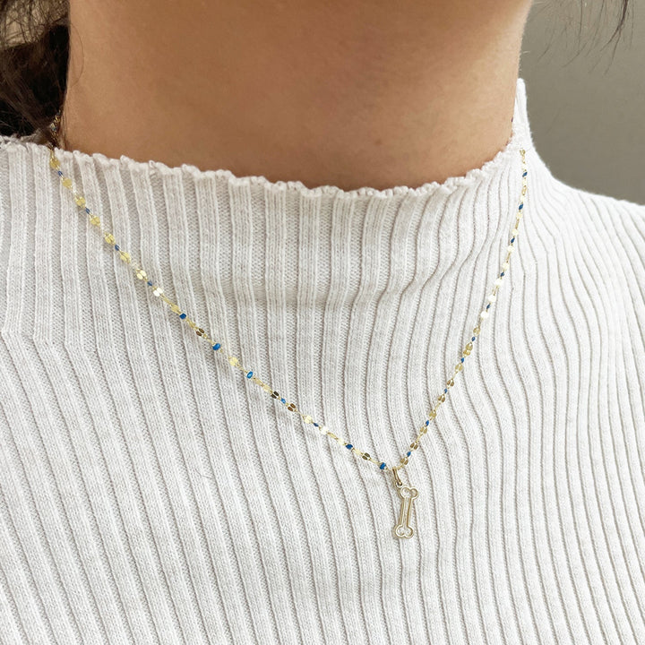 This Mini Gold Bone Charm by The Lovery is a playful and cute charm that adds personality to your jewelry collection. The bone motif represents loyalty and companionship, making it a thoughtful gift for a pet lover or anyone who values meaningful symbols. Small and versatile, it can be added to bracelets or necklaces for a personalized touch.