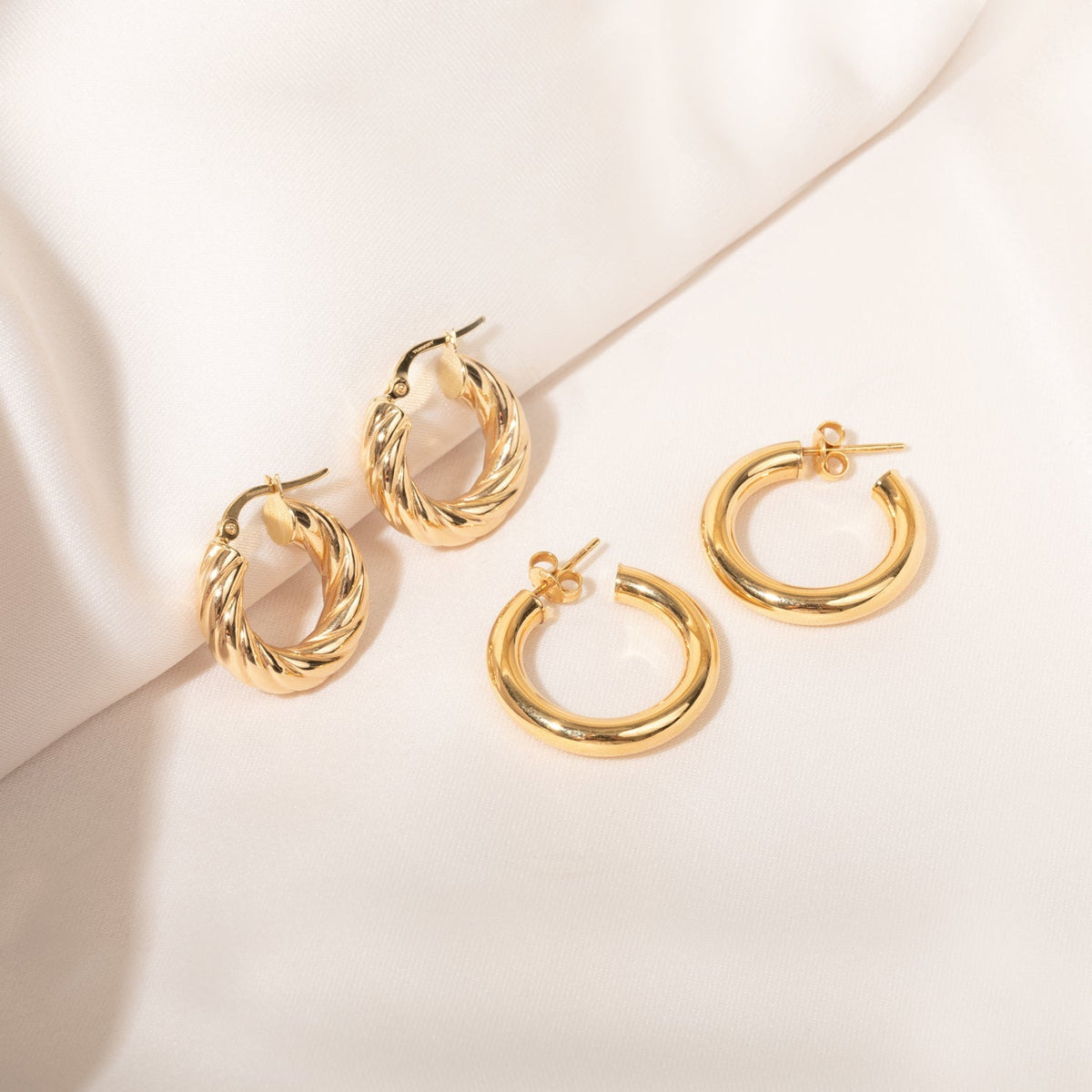 These Croissant Hoop Earrings by The Lovery are simple yet elegant, offering a polished design in 14K yellow gold. Measuring 5 x 20mm, these hoops are perfect for adding a refined, eye-catching touch to any outfit, whether for casual wear or a special occasion.